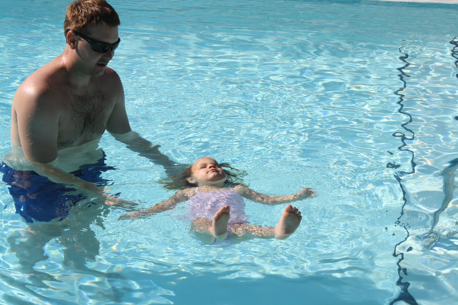 She liked to "cheat" and when she swam to the steps, she thought she could stand up sooner than she should. She always wanted to go to one step lower than she should. Often she would have to float on her back to figure out what to do. I'm glad she floats b/c she already likes to jump in! Whew!